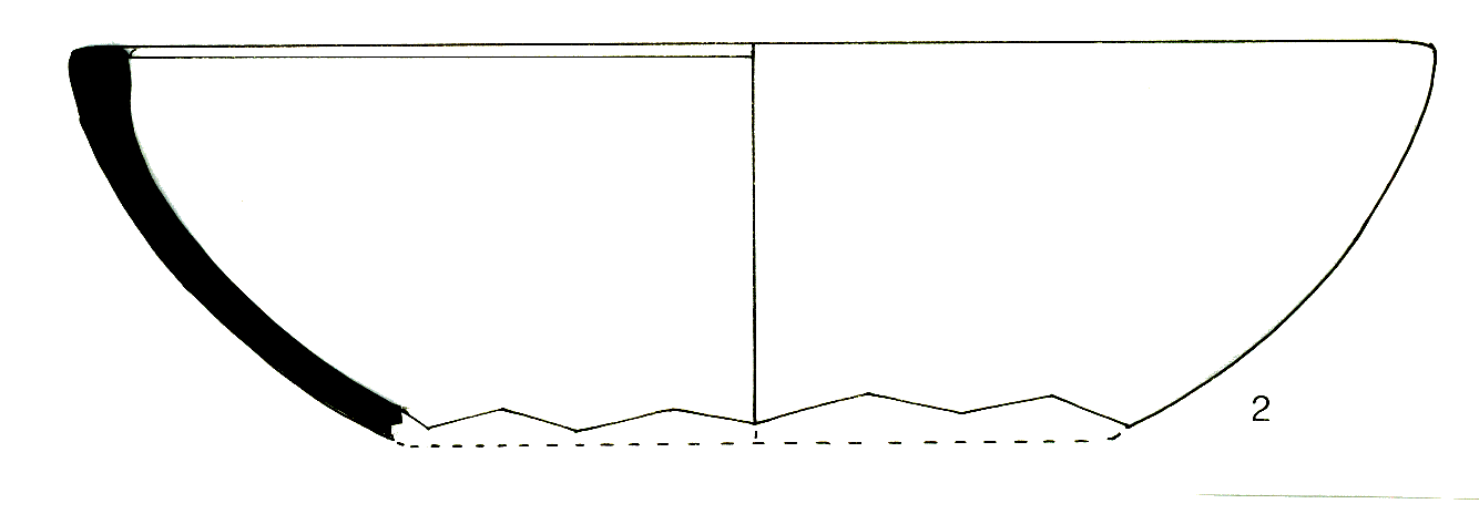 Plat-creux de forme hémisphérique ; rebord épaissi à l'intérieur, lèvre plate ; base portante ;