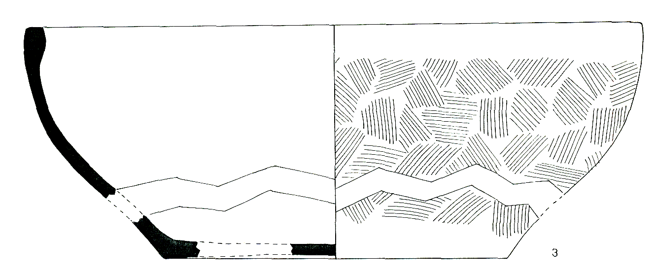 lèvre ronde ; base portante ; céramique non tournée, pâte de couleur noire, orangée en surface ;