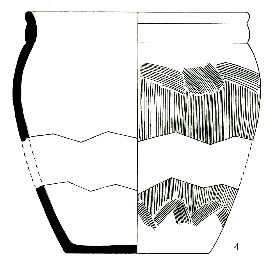 surface peignée. Chevrons tracés au peigne au bas de la panse, limitant le peignage vertical.