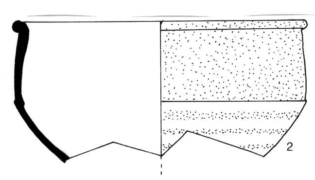 rebord en rouleau, lèvre ronde ; céramique tournée, pâte de couleur grise, gris-bleu en surface ;
