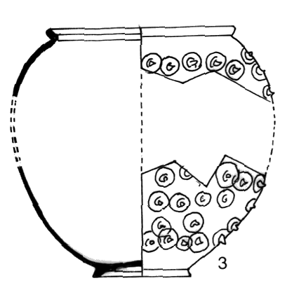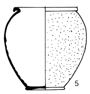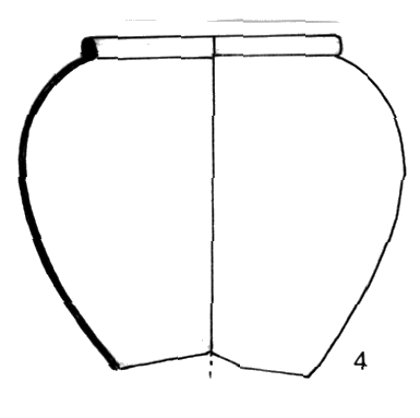 Pot de forme ovoide ; encolure horizontale externe, concave, rebord épaissi à l'extérieur, lèvre convexe ;